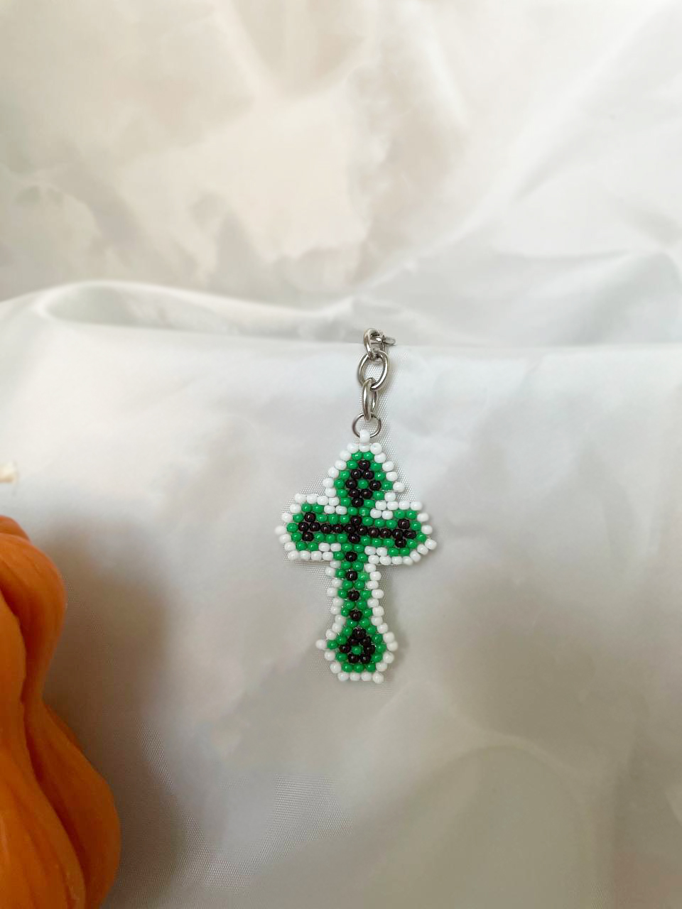 جاسوئیچی صلیب سبز میوکی، از ترکیب 3 رنگ جذاب سبز و سفید و مشکی ساخته شده که ظاهری بسیار خاص و جذاب دارد. این جاسوئیچی بسیار سبک است، رنگ ثابتی دارد و با ظرافت و دقت ساخته ساخته شده است.
