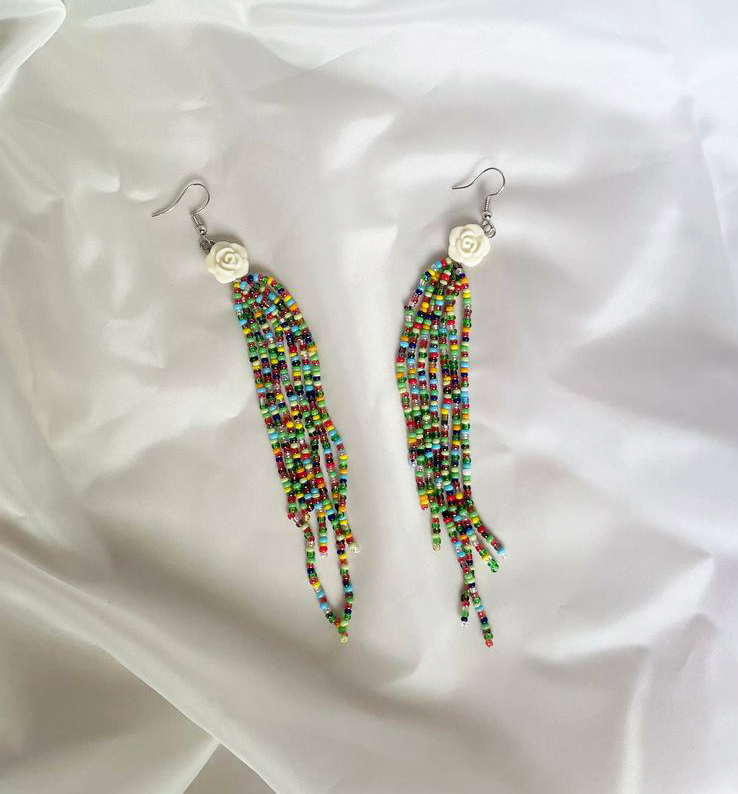 گوشواره آبشاری رنگین کمونی، ساخته شده از مهره های رنگی به همراه مهره ی سفید رز، طراحی خاص و کیوت این محصول و رنگ های متنوعش، باعث میشه راحت بتونین ست کنید با همه چی. اگر علاقه مند به طرح و استایل سرخپوستی هستین یا عاشق اکسسوری های رنگی رنگی هستین این محصول مخصوص شماست.
